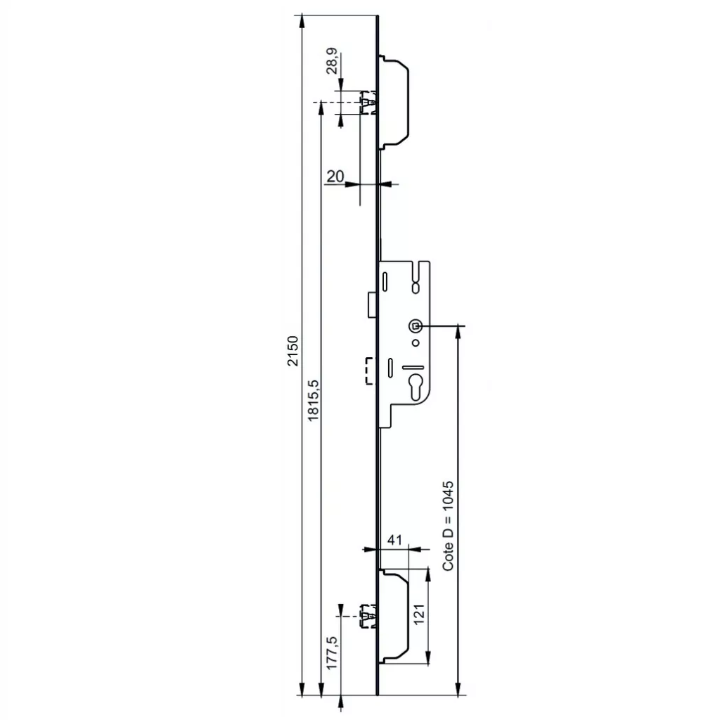 - Dimension tringlerie/axe de clé : 40mm